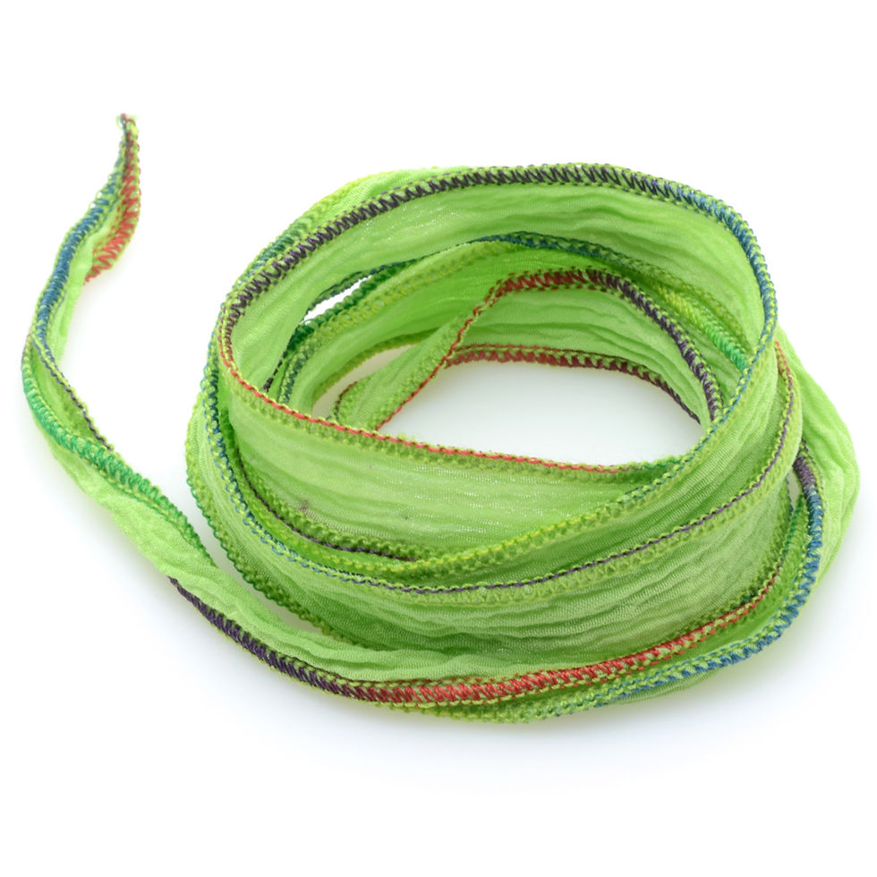 Our Hawaiian silk wraps can hold 1, 2 or 3 charms. You wind them around your wrist and tie with a small bow. Make a knot on either side of the charm(s) so they don’t slide around. Each wrap is 100% silk, has serged edges and is quite durable. They measure approximately 33” in length.